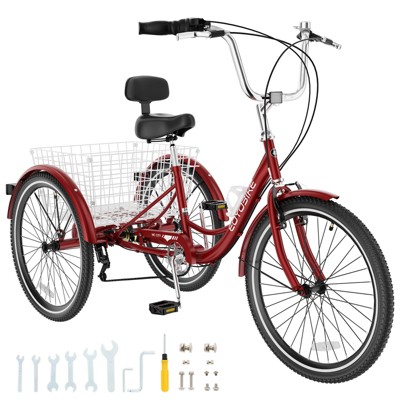VEVOR Adult Tricycles Bike, 24 Inch Three-Wheeled Bicycles, 3 Wheel Bikes Trikes, Carbon Steel Cruiser Bike with Basket & Adjustable Seat