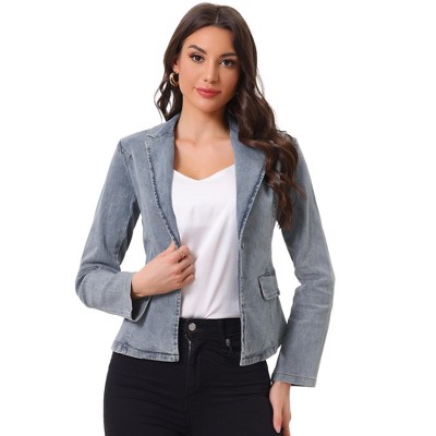 INSPIRE CHIC Women's Lapel Notch Collar Long Sleeve Denim Blazer Jackets