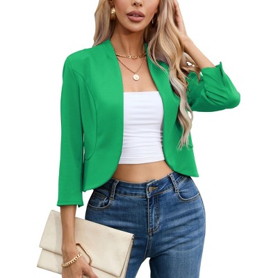 INSPIRE CHIC Women's Business Casual Short Sleeve One Button Notched Collar Work Cropped Blazer