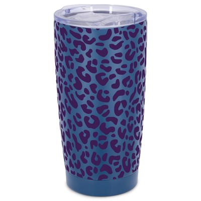 Elanze Designs 20 oz Stainless Steel On the Go Insulated Travel Tumbler With Push Top Lid, Royal Purple Cheetah Leopard Print Blue