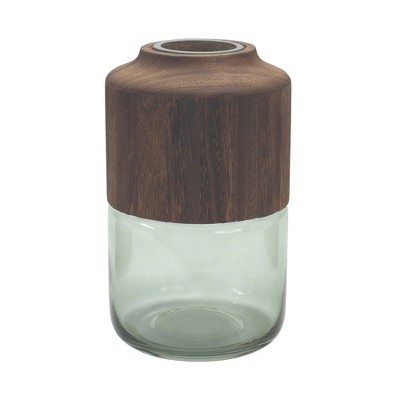 HomeRoots 11" Brown And Sage Glass Round Table Vase With Wood