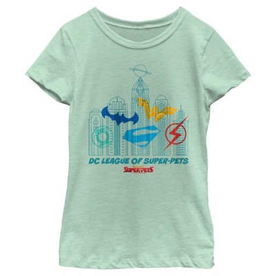 Girl's DC League of Super-Pets Metropolis Skyline Outline T-Shirt