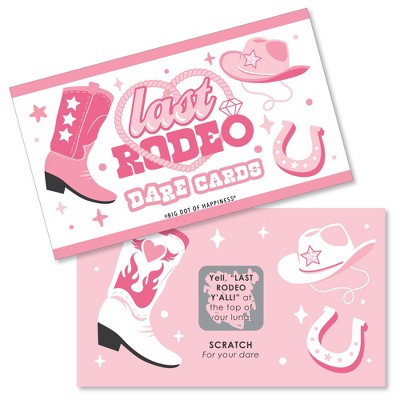 Big Dot of Happiness Last Rodeo - Pink Cowgirl Bachelorette Party Game Scratch Off Dare Cards - 22 Count