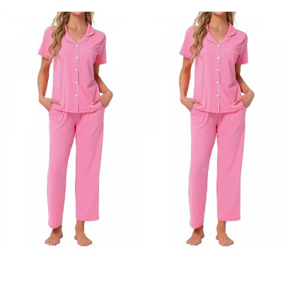 INSPIRE CHIC Women's 4 Pcs Button-Up Short-Sleeve Shirt & Pants Pajama Loungewear Set