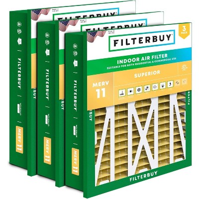 Filterbuy 24x24x5 Air Filter (3-Pack), Pleated MERV 11 Allergen Defense Replacement HVAC AC Furnace Filters for Honeywell Return Grille