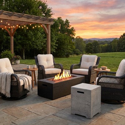 45" Outdoor Rectangle Fire Pit Dining Table - Black - Captiva Designs: LP Gas, 50000 BTU, Rust-Resistant