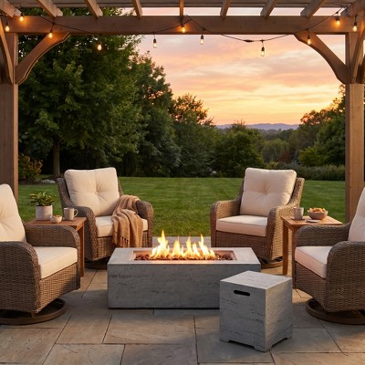 Baltic Rectangle Propane Fire Table - Gray - Real Flame: Outdoor Coffee Table, 50K BTU, Rust-Resistant
