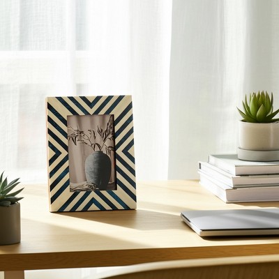 Sagebrook Home 4" x 6" Decorative Photo Frame - Contemporary Polyresin Blue and White Striped Picture Frame - Home