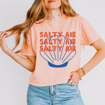 Salty Air Seashell - Women's Boxy Crop Top Graphic T-Shirt