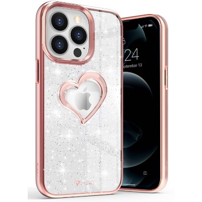 Vena vLove For Apple iPhone 13 Pro Case Heart, Heart Shape Design (MagSafe Compatible) Dual Layer Slim Hybrid Bumper Case Cover, Holographic Rainbow