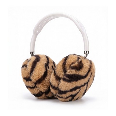 Alilang Tiger Print Plush Headphone Case for AirPods Max, Cute Furry Protective Cover with Soft Lining
