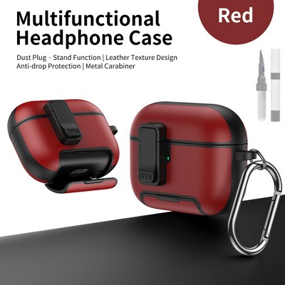 HTUTWOO for Airpods 4 Leather Case, All-Round Headphone Protective Cover, With Hidden Bracket, Magnetic Lock, Cleaning Kit for Man Women