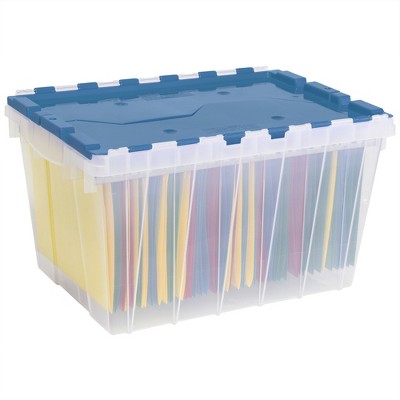 Akro-Mils KeepBox 12 Gal Plastic Storage Bin, Stackable Tote w/ Lid, Clear/Blue