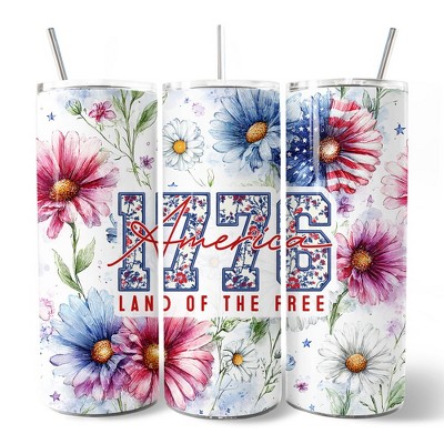 Retro America 1776 Daisy Flower 20oz Tumbler With Lid and Stainless Steel Straw, Land of Free Patriotic Gift Cup | OrnamentallyYou
