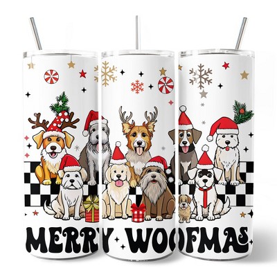Funny Merry Woofmas 20oz Tumbler With Lid and Stainless Steel Straw, Dogs With Santa Hats Christmas Gift Cup | OrnamentallyYou