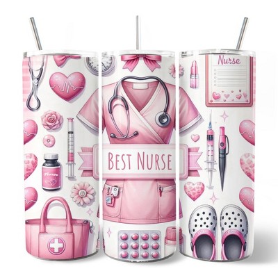 Pink Nurse Life 20oz Tumbler With Stainless Steel Straw, Medical Worker Appreciation Gift (Non-Custom Only)| OrnamentallyYou