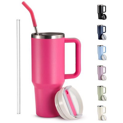HOST Freeze Insulated Martini Cooling Cups, Plastic Freezer Gel Chiller Double Wall Stemless Cocktail Glass Set of 2, 9oz Punch Pink