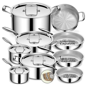 Itopfox Professional 5-Layer Stainless Steel Cookware Set, 14-Piece Induction Compatible Pots and Pans, Oven Safe, PFOA, PTFE & PFOS Free