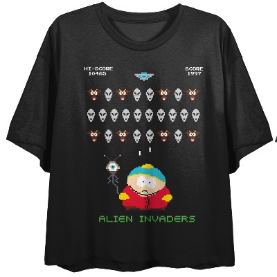 South Park Alien Invaders Crew Neck Short Sleeve Women's Black Crop Top