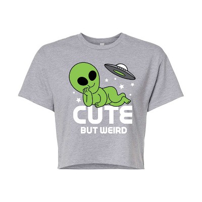 Women's - Instant Message - Alien Cute But Weird Cropped Graphic T-Shirt