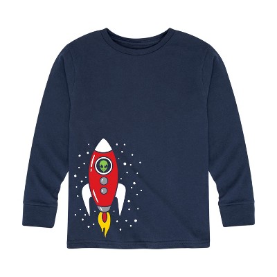 Boys' - Instant Message - Spaceship With Cute Alien Long Sleeve Graphic T-Shirt