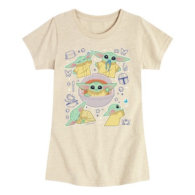 Girls' - The Mandalorian - Grogu Stickers Fitted Short Sleeve Graphic T-Shirt