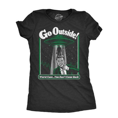 Womens Go Outside T Shirt Funny Alien UFO Nature Outdoors Lovers Joke Tee for Ladies - Crazy Dog Women's T Shirt For Astronauts