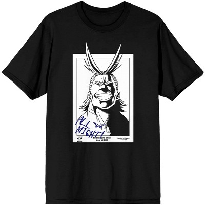 Mens My Hero Academia Anime All Might Character Black Graphic Tee