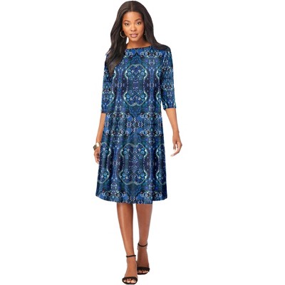 Roaman's Plus Size 3/4 Sleeve Boatneck Swing Dress