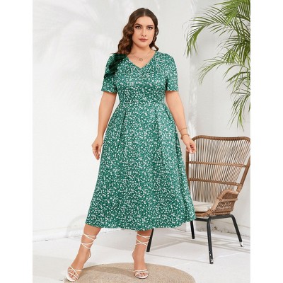 Allegra K Women's Floral Flutter Sleeves V Neck Smocked Ruffle Sundresses