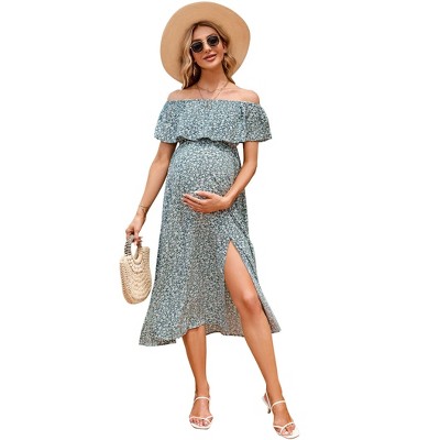 Clearlove Women's Off-the-shoulder Maternity Dress Elegant Slit Floral Midi Dress