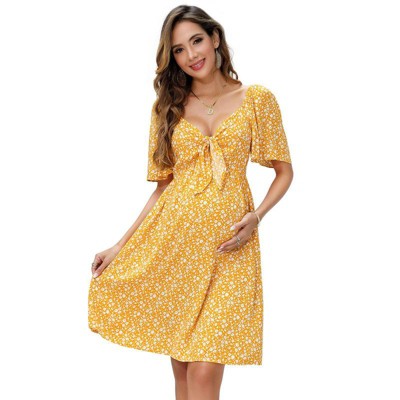 Clearlove Women's Off-the-shoulder Maternity Dress Elegant Slit Floral Midi Dress