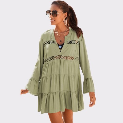Coolmee Women's Summer Babydoll Dresses Cute Ruffle Sleeve V-Neck Sundress Flowy Swing Mini Dress