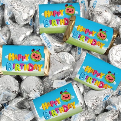 124 Pcs Cooky Melon Kid's Birthday Candy Party Favors Wrapped Hershey's Miniatures and Kisses by Just Candy (1.5 lbs)
