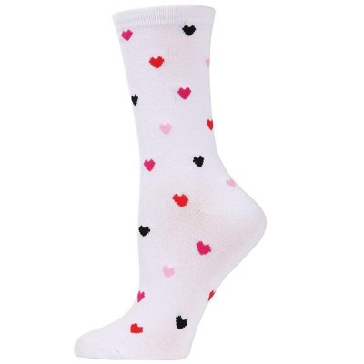 Memoi Delicate Hearts Bamboo Blend Crew Socks