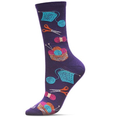 Memoi Knitting Bamboo Blend Crew Socks Blackberry Cordial 9-11