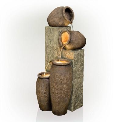 43" Resin Pottery Fountain with LED Lights & Pump - Alpine Corporation: Weatherproof, Rust-Resistant