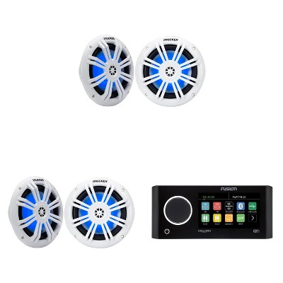Fusion MS-RA60 Marine Stereo With Wireless Connectivity w/ 51KM614FL 6.5-Inch (165mm) Thin-Mount Marine Coaxial Speakers with RGB LED, 4-Ohm, White...