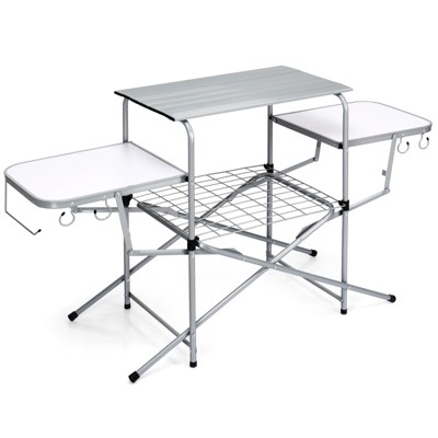 - portable foldable camping picnic table seats chairs and umbrella hole fold up travel picnic table