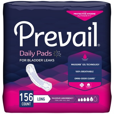 Prevail Daily Pads Female Incontinent Pad Long Length 12.5 Inch BC-013, 64, 144 Ct