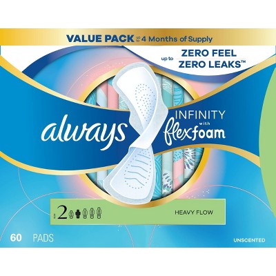 Always Infinity Heavy Long Menstrual Pads - 60ct
