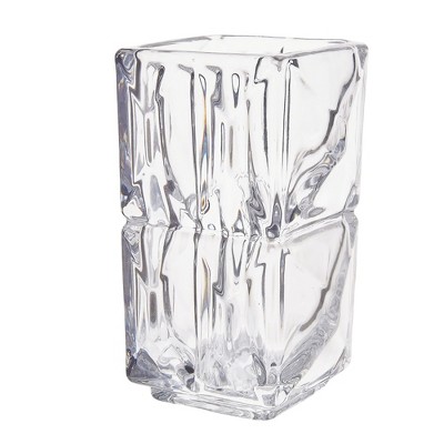Gulches 5.9x5.9x7.9 Inch Clear Glass Accent Vase with Artistic Amber Spots, Wide Cylindrical Decor Vase for Living Room Entryway Bedroom, 1.3 lbs