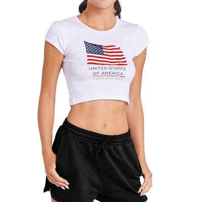 Women's USPS American Flag Break Out Cap Sleeve Baby Rib Crop Top