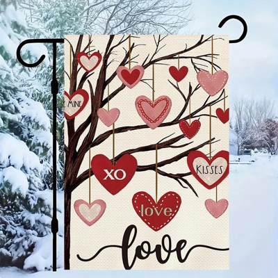 Valentines Day Garden Flag Single Sided Outside, Love Heart Tree Rustic Anniversary Wedding Yard Outdoor Flag 12x18in