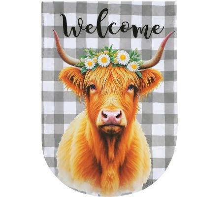 Briarwood Lane Summer Burlap House Flag 40x28 For Outdoor Checkered Highland Cow For Summer House Flag