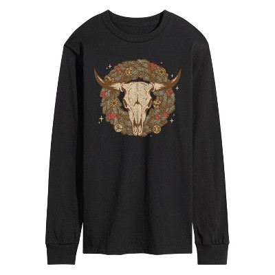 Men's - Instant Message - Cow Skull Wreath Long Sleeve Graphic T-Shirt