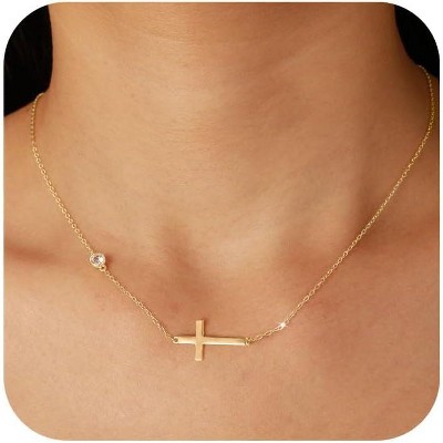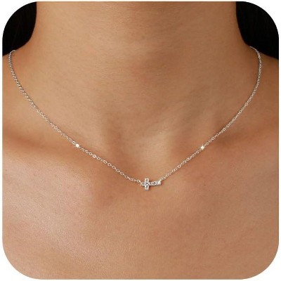 Layered Initial Necklace for Women, 14K Gold Plated Letter Pendant with Cross Charm, Paperclip Chain Choker Jewelry