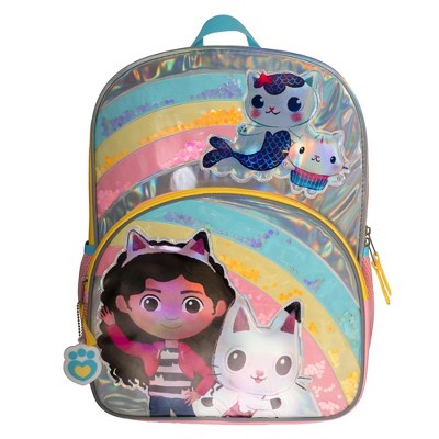 Gabbys Dollhouse 16 Backpack, Girls Iridescent Rainbow School Bag With Floating Confetti, Pink