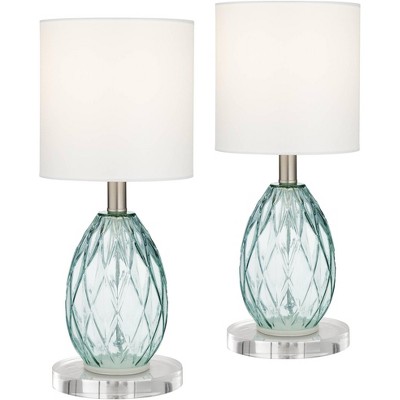 360 Lighting Rita Modern Accent Table Lamps Set of 2 with Round Risers 18 1/2" High Blue Green Glass White Shade for Bedroom Living Room Bedside Kids
