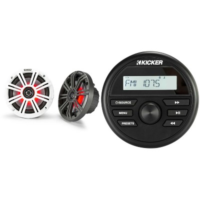 Kicker KMC2 Gauge Mount Marine Grade Receiver & (2 pair ) 45KM654L 6.5" LED Speakers bundle